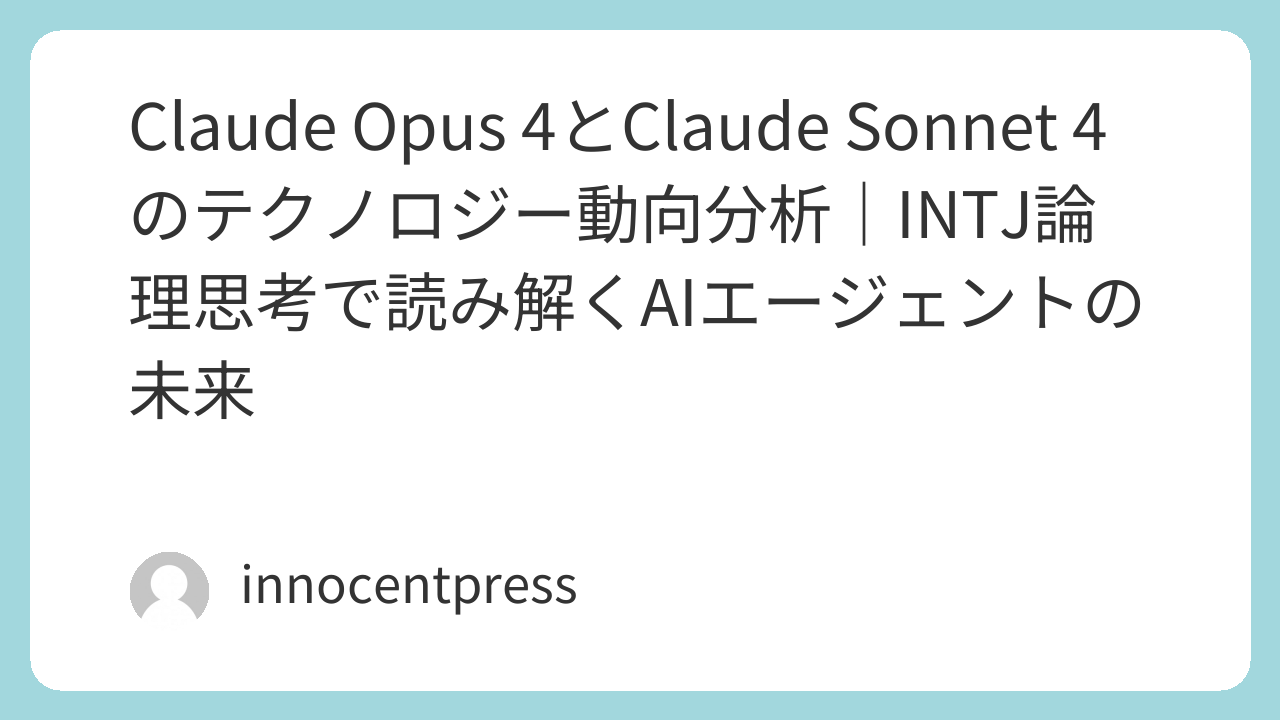 AIエージェント時代の到来により、知的労働の自動化・最適化が急速に進行している。AnthropicがリリースしたClaude Opus 4とClaude Sonnet 4は、AI活用の新たな基準を打ち立てた。本稿では、両モデルの技術的進化・業務インパクト・リスク・戦略的活用法を、INTJ論理思考と未来予測の視点から徹底分析する。