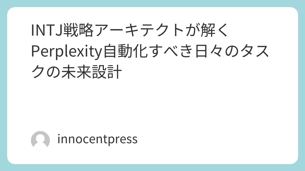 Perplexityの革新的AI機能により、日常業務の自動化は新たな次元に到達しています。2025年1月にリリースされたPerplexity Assistantは、単なる検索ツールを超えて、複雑なタスクを自律的に実行するAIエージェントとして機能し、業務効率化の根本的変革を実現しています。本稿では、INTJ型認知機能による論理的分析を通じて、Perplexityで自動化すべき日々のタスクを体系的に特定し、生産性の最大化を実現するための戦略的フレームワークを提示します。従来数時間要していた情報収集・分析・実行プロセスが数分で完了する圧倒的効率化により、知的労働者の時間配分と価値創造の最適化が可能となっています。