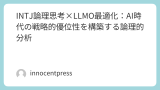 - INTJは大規模言語モデル最適化(LLMO)やAI戦略設計において、認知機能レベルでの本質的理解により、AI進化に対応可能な普遍的最適化理論を構築できます。