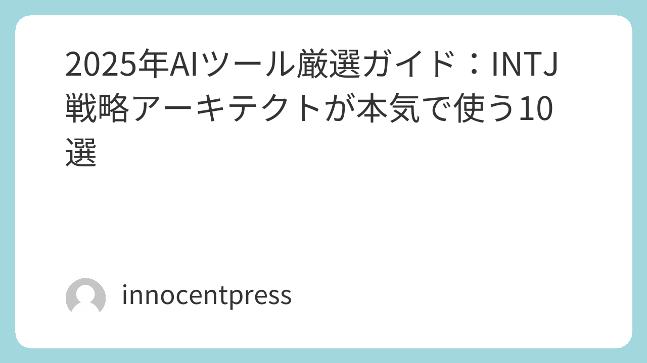 INTJ戦略アーキテクトの視点では、AIツールは「戦略設計」「論理思考」「業務効率化」「知的生産性」の4軸で評価し、短期的な便利さだけでなく、中長期の進化性・統合性・リスクまで見据えて選定することが不可欠です。