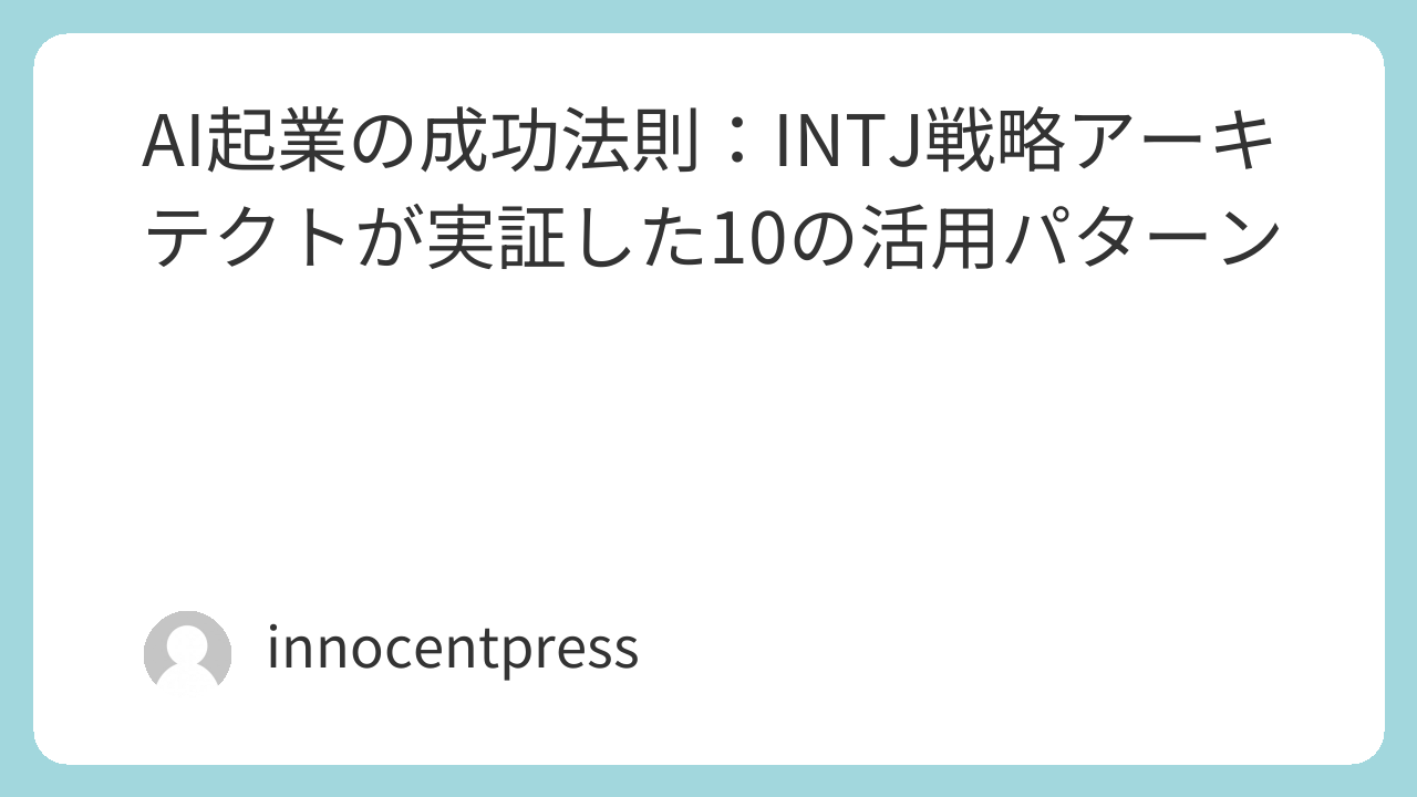 AI起業市場は2025年現在、急速な成長と激しい競争が同時進行する複雑な環境です。成功するには技術理解だけでなく、市場洞察・戦略設計・リスク管理・継続的最適化を統合した包括的アプローチが必要です。INTJ戦略アーキテクトは、内向的直観(Ni)による未来予測と外向的思考(Te)による論理的実装を融合し、AI起業で再現性の高い成功パターンを構築できます。