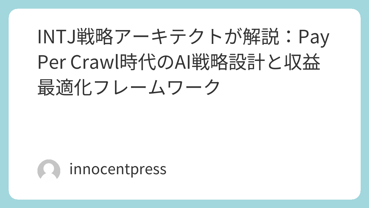 INTJ戦略アーキテクトが解説:Pay Per Crawl時代のAI戦略設計と収益最適化フレームワーク