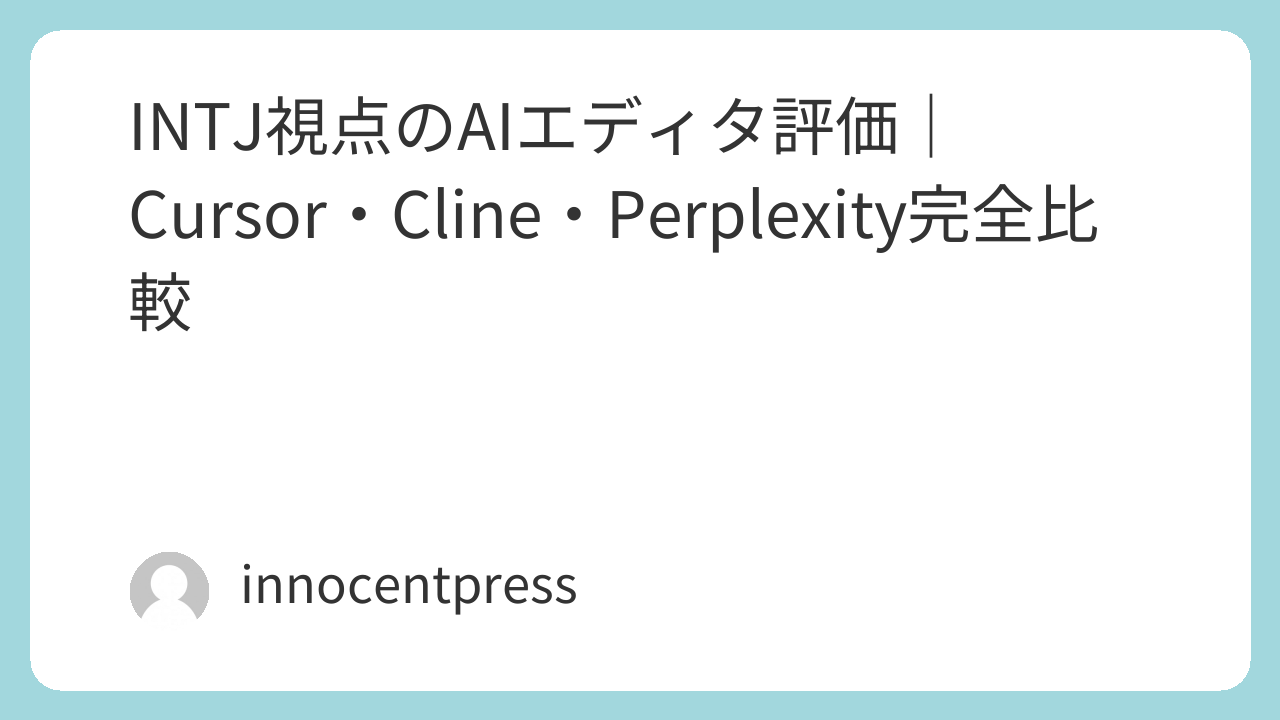 INTJ戦略アーキテクトの思考プロセス(Ni-Te)を適用し、AIエディタ選択を体系化する。目的設定から改善サイクルまでの6段階で、定量的判断基準を確立する必要がある。