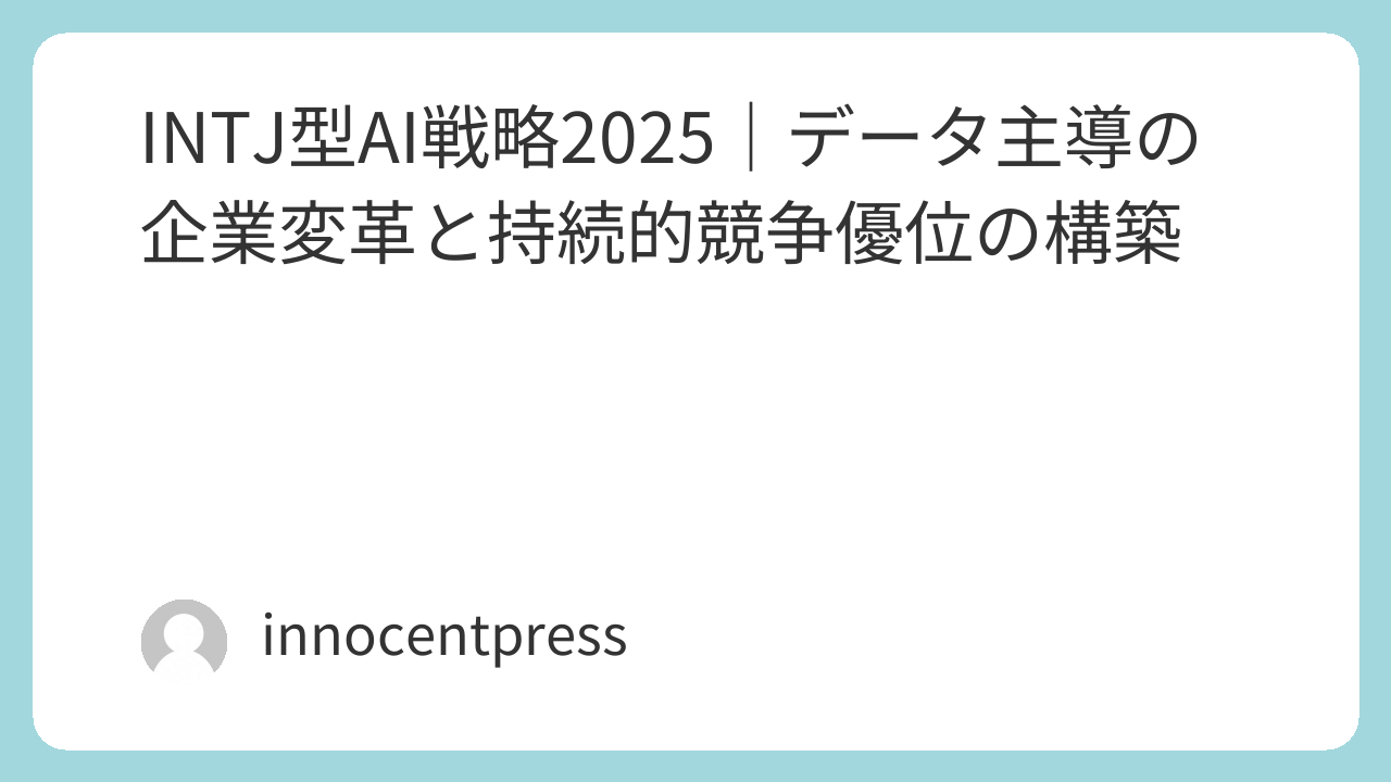 AI導入が企業競争の分水嶺となる2025年、成功と失敗を分ける要因は戦略的思考の質にある 。表面的な効率化を追求する企業が乱立する中、真の変革を実現するには、INTJ型の戦略アーキテクチャ—内向的直観(Ni)によるパターン認識と外向的思考(Te)による論理的実行—が不可欠だ 。