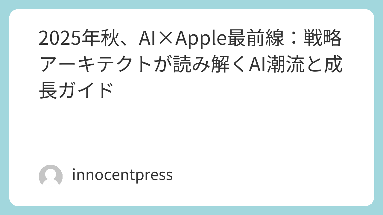 - AIやApple関連の技術・事業戦略動向をリアルタイムに押さえたい方