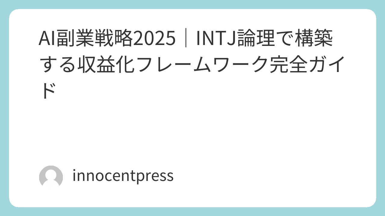 要約: INTJ論理フレームを活用し、直感的洞察(Ni)と体系的実行(Te)を統合した収益化システムを構築する。