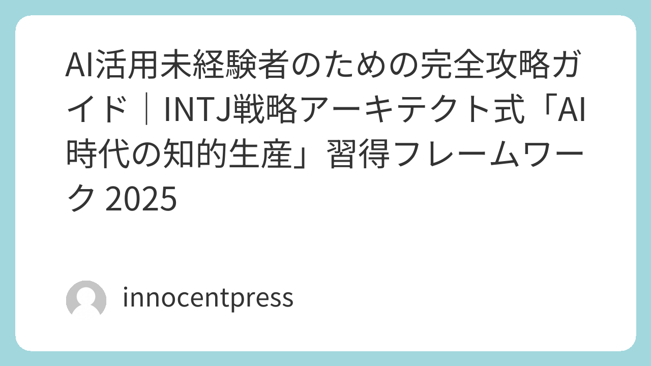 2025年現在、AI活用は知的労働者にとって不可欠なスキルへと進化しています。未経験者でも、段階的な手順に取り組むことで、約3ヶ月以内には実務で通用する活用レベルに到達可能です。本記事では、誰でも今すぐ実践できるチェックリストやテンプレートを用意し、環境構築から成果最大化までサポートします。さらにINTJ論理構築者の長期戦略に基づく具体的ステップを、実証データを交えて分かりやすく解説しています。読了後には、90日間でAI活用力を習得するプログラムと、主要リスクを回避できる実用的なチェックリストも特典として取得できます。