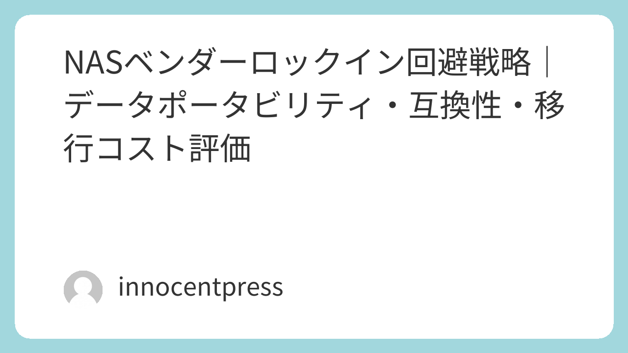 ロックイン影響:Synology独自APIに依存していると、2030年のAI統合NASへの移行時に「データはポータブルだが、AI機能設定・自動化スクリプトは移行不可」という部分ロックインが発生します。
