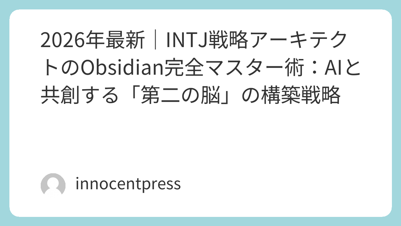 - 1. なぜINTJにとってObsidianが「唯一の聖域」なのか:認知機能の論理的解剖