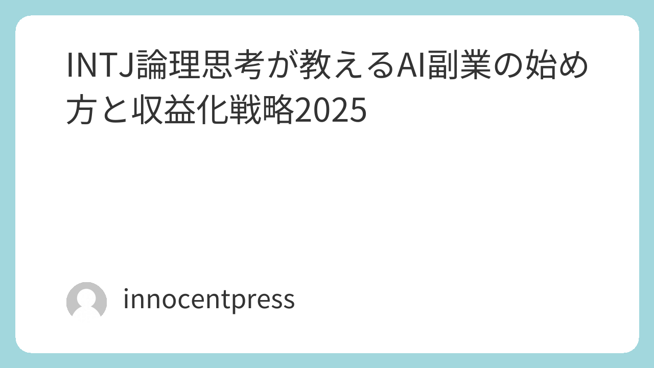 本コラムでは、INTJ論理思考のプロトコル──「抽象化」「戦略設計」「定量分析」「現実適応」を活用し、AI副業で成果を出すための本質的な戦略と実践ノウハウを徹底解説する。