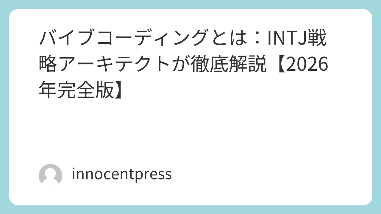 本記事では、INTJ戦略アーキテクト(認知最適化専門家)としてINTJ認知機能×AI活用×戦略設計の融合により、バイブコーディングの本質を徹底解説します。