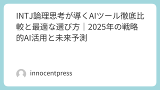 ツール・サービスレビュー INTJ論理思考が導くAIツール徹底比較と最適な選び方|2025年の戦略的AI活用と未来予測 2025年のAIツール選定は論理的思考が鍵。主要AIツールの徹底比較、導入プロセス、最新トレンド、戦略的活用法と未来予測をINTJ視点で体系的に解説します。 2025.05.18 ツール・サービスレビュー